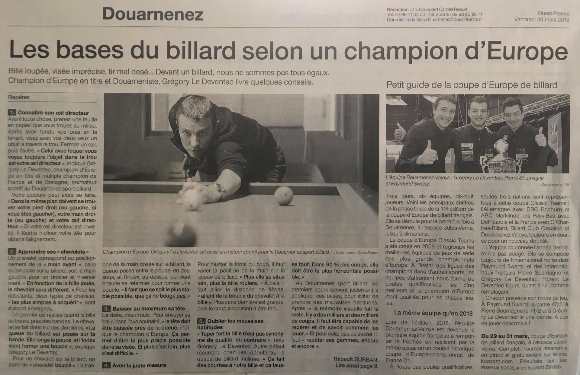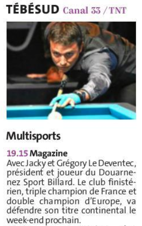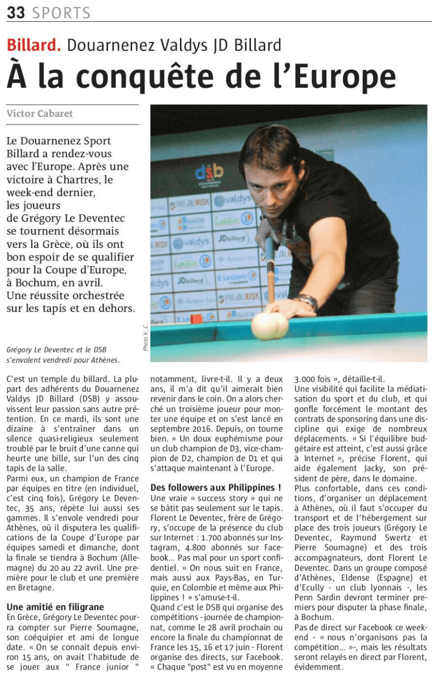 🆕 Nouvelle série avec une petite interview par semaine des joueurs de Douarnenez Valdys et de Douarnenez Franpac. 🎙 Greg Le Deventec 🇫🇷 Douarnenez Valdys et Franpac ❓ Quelle est la situation actuelle dans ta ville et ton pays concernant la Covid ? Nous sommes toujours sous couvre-feu et limité à 10 kms de déplacement mais toujours aucune amélioration notable de la situation. ❓ Combien de temps peux-tu t’entraîner chaque jour ou chaque semaine ? Je maintiens un entraînement continu de 5 à 10h par semaine mais il est difficile de trouver de la motivation en cette période sans compétition. ❓ A quoi ressemble ta vie sans compétitions ? Je peux profiter pleinement de mes enfants et je fais des travaux dans ma maison. ❓ Tes objectifs pour la saison prochaine ? L'objectif 1er est de pouvoir reprendre les compétitions et si c'est le cas le championnat d'Europe à la bande et la Coupe d'Europe par équipes seront mes objectifs prioritaires. ⚫⚪ ⭐️⭐️⭐️️ #DouarnenezValdys #VibrerDSB #Billard #DouarnVenezButton