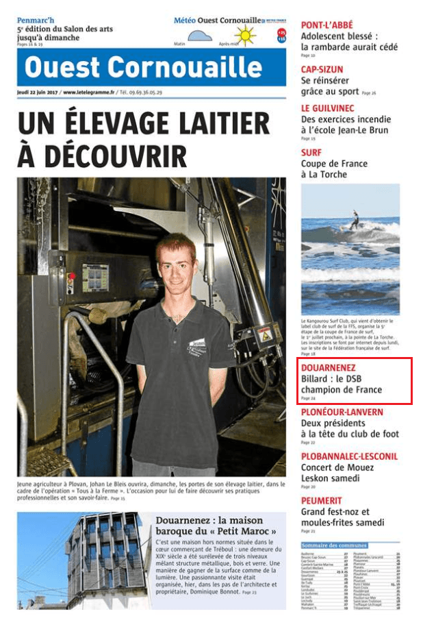 ✍️ Le DSB est heureux et fier de vous annoncer l'arrivée de Louis Edelin dans la Team Douarnenez Valdys, triple championne d'Europe en titre ! 🏆 Son palmarès : Vice-champion du Monde, Champion d'Europe et 15 fois champion de France Masters 💪 😉 Degemer mat Loeiz bihan ⚫⚪ ⭐️⭐️⭐️ #VibrerDSB #DouarnenezValdys #TeamDSB #Billard Crédit photo : Fédération Française de BillardButton