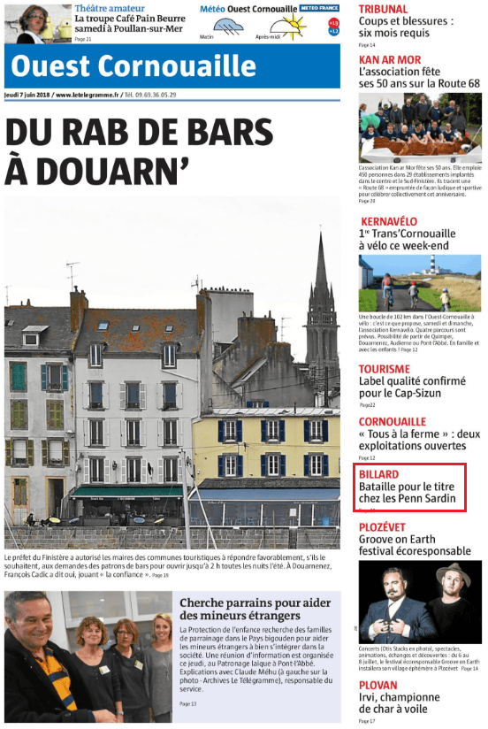 À tous ceux qui l'ont connu, nous venons d’apprendre avec une infinie tristesse le décès d’un des nôtres, Henri COTONEA, ancien trésorier du DSB et surtout un ami de longue date qui faisait partie des premiers ambassadeurs de ce sport à Douarnenez. Une chose est certaine c’est que toutes celles et ceux qui l’ont connu ne chanteront plus son célèbre refrain « Car c’est à Douarnenez qu’on pêche la sardine » sans un pincement au cœur et une pensée émue en souvenir des nombreux moments conviviaux qu’il affectionnait tant. Que du bonheur que du plaisir comme tu aimais à le répéter Henri avec un léger accent douarneniste qui a résonné dans la France du billard. Les copains du DSB ne t’oublieront pas l’ami. Repose en paix dans cette baie de Douarnenez qui sera tienne pour l’éternité et embrasse Mich de notre part. 😘💫🙏😘Button
